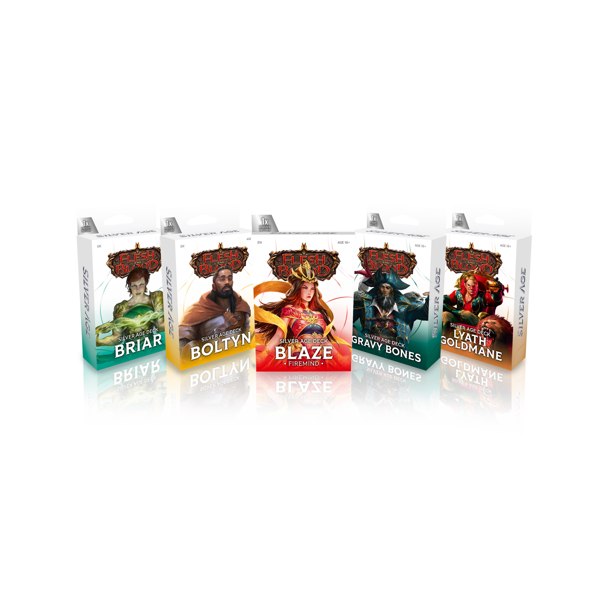 Coming off the back of the success of Chapters 1 and 2, Chapter 3 features 5 new preconstructed decks designed for immediate tournament play straight out of the box. Choose from Blaze Firemind (Wizard), Boltyn (Light Warrior), Briar (Elemental Runeblade), Gravy Bones (Pirate Necromancer), or Lyath Goldmane (Reviled Guardian).